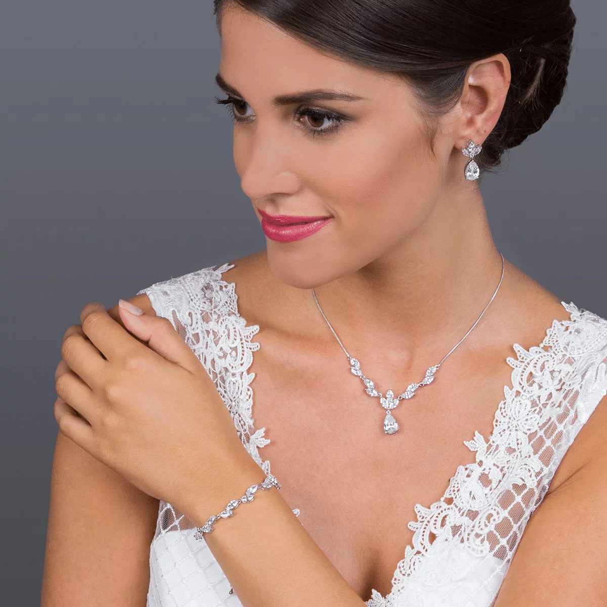 Das wunderschöne Schmuckset JN070 von G. Westerleigh ist mit Cubic Zirconia Kristallen verziert, welche in aufwändiger Handarbeit eingearbeitet wurden. Außerdem ist das Brautschmuck-Set mit Silber bedeckt und antiallergen (nickel- und bleifrei). Es passt daher auch zur empfindlichen Haut. Das Brautschmuck-Set JN070 besteht aus Ohrringen und Halskette und wird im eleganten Schmucketui geliefert. Die Länge der Halskette kann individuell verändert werden. Eine ideale Wahl für Hochzeiten und besondere Anlässe.