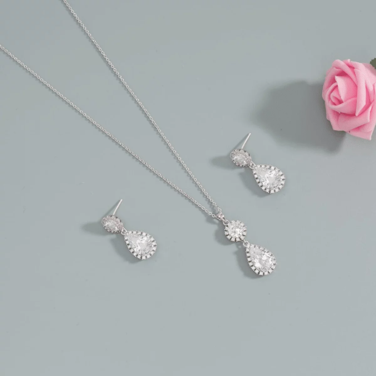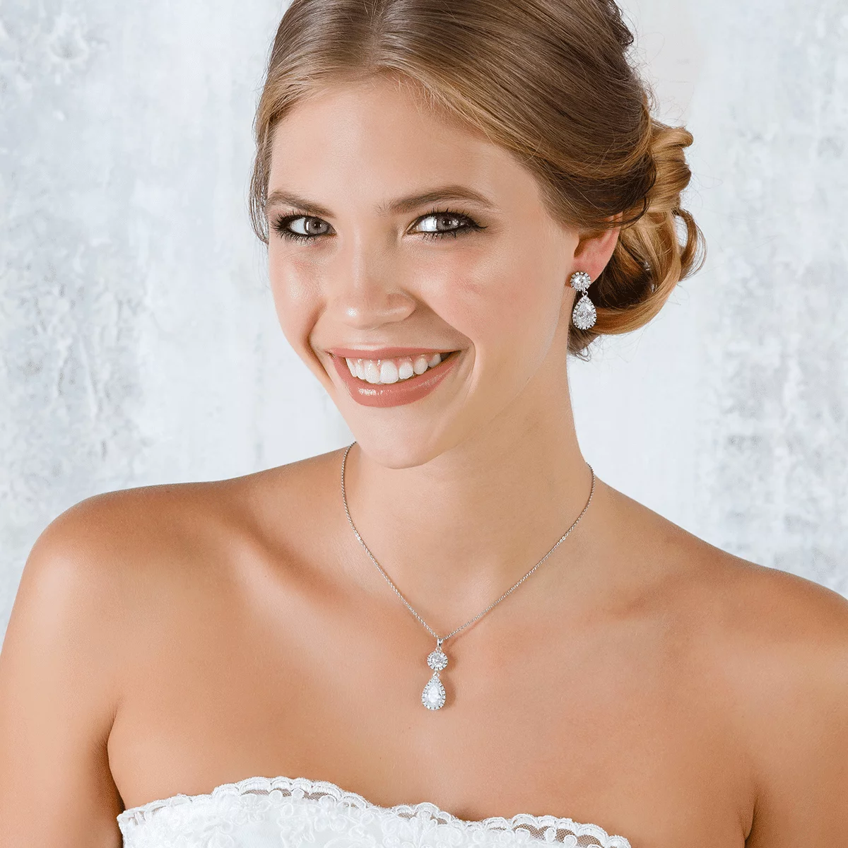 Das wunderschöne Schmuckset JN0987 von G. Westerleigh ist mit Cubic Zirconia Kristallen verziert, welche in aufwändiger Handarbeit eingearbeitet wurden. Außerdem ist das Brautschmuck-Set mit Rhodium bedeckt und antiallergen (nickel- und bleifrei). Es passt daher auch zur empfindlichen Haut. Das Brautschmuck-Set JN0987 besteht aus Ohrringen und Halskette und wird im eleganten Schmucketui geliefert. Die Länge der Halskette kann individuell verändert werden. Eine ideale Wahl für Hochzeiten und besondere Anlässe.