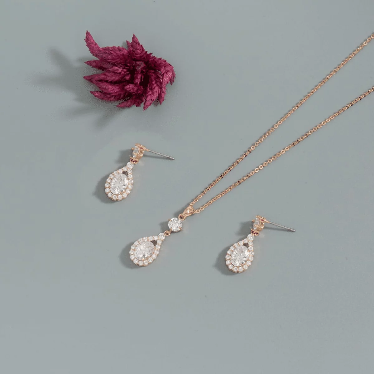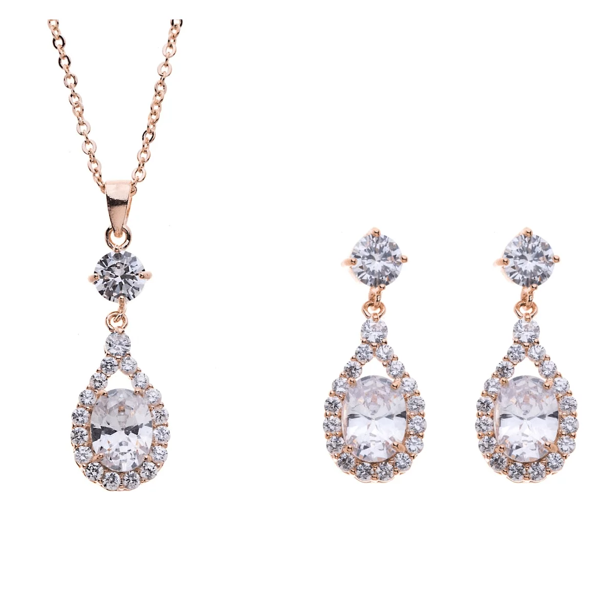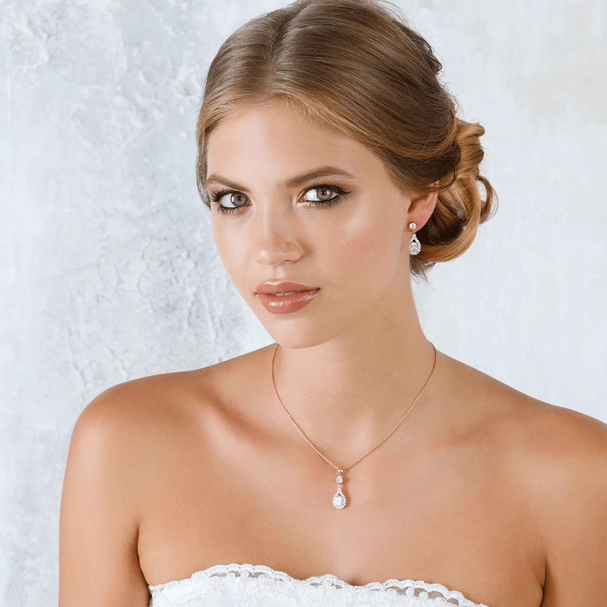 Das wunderschöne Schmuckset JN4611RG von G. Westerleigh ist mit Cubic Zirconia Kristallen verziert, welche in aufwändiger Handarbeit eingearbeitet wurden. Außerdem ist das Brautschmuck-Set mit Rose-Gold bedeckt und antiallergen (nickel- und bleifrei). Es passt daher auch zur empfindlichen Haut. Das Brautschmuck-Set JN4611RG besteht aus Ohrringen und Halskette und wird im eleganten Schmucketui geliefert. Die Länge der Halskette kann individuell verändert werden. Eine ideale Wahl für Hochzeiten und besondere Anlässe.