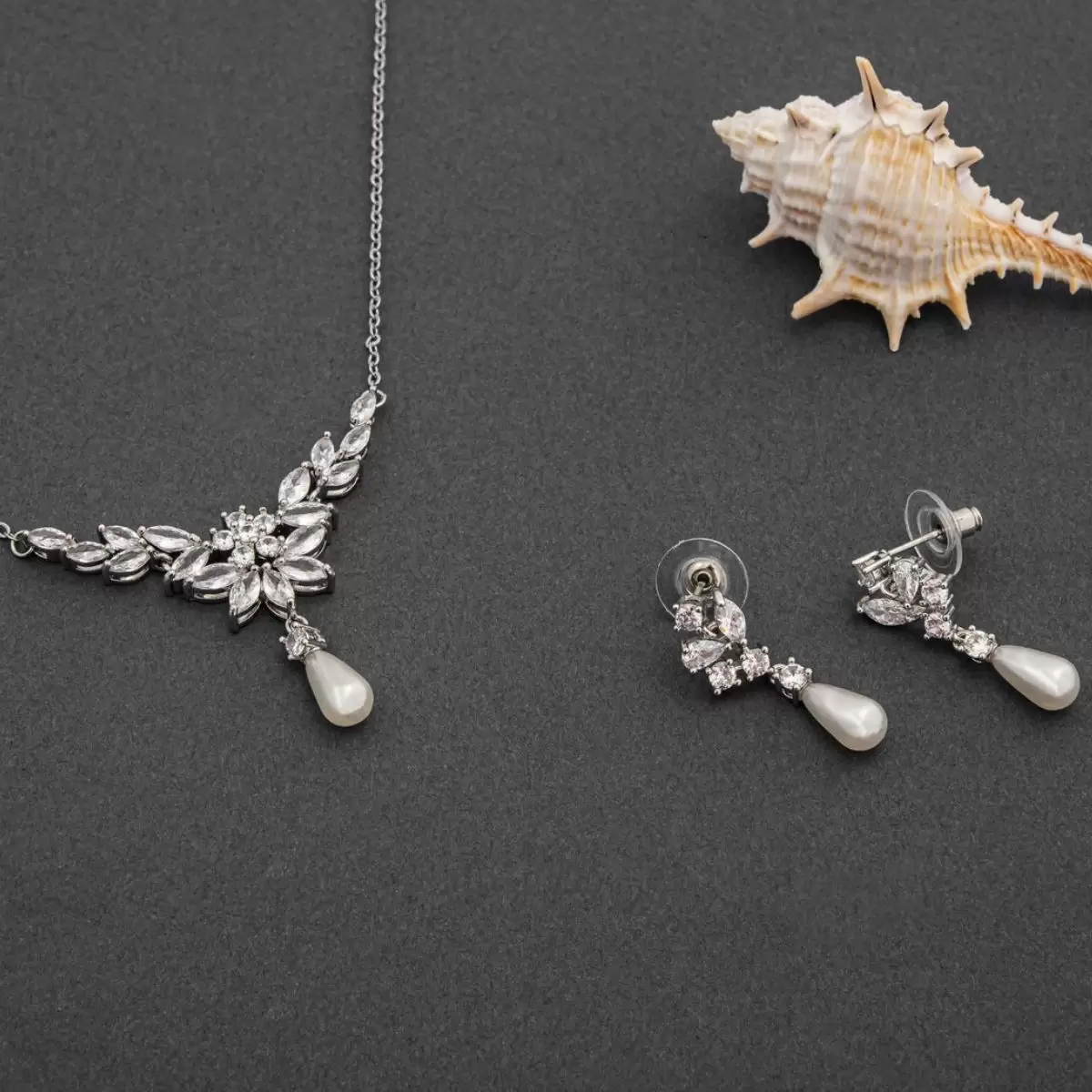 Wunderschönes Schmuckset JS1019 von G. Westerleigh. Verziert mit hochwertigen Zirkonia-Kristallen und feinen Perlen, die in aufwändiger Handarbeit eingearbeitet wurden. Das Schmuckset ist rhodiniert, die Länge der Kette ist verstellbar. Das Set JS1019 besteht aus Ohrringen und Halskette und wird im eleganten Schmucketui geliefert. Schickes Brautschmuck-Set, das bei Hochzeiten und zu wichtigen Anlässen besonders zur Geltung kommt.