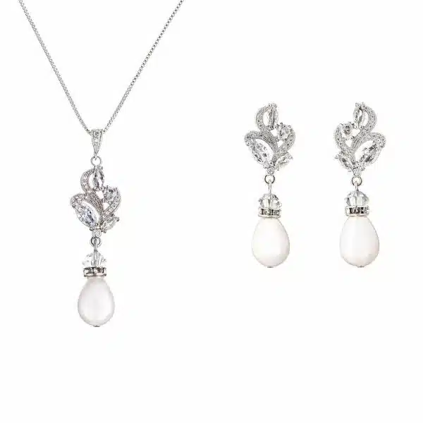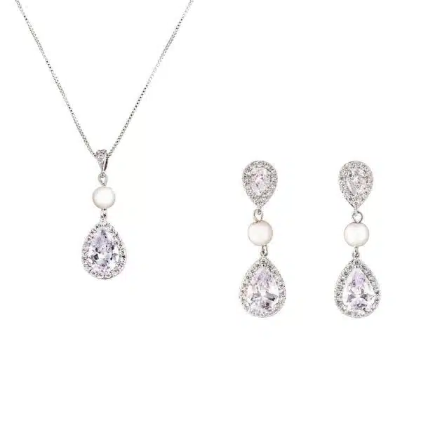 Elegantes Schmuckset JS211207 von G. Westerleigh. Verziert mit hochwertigen Zirkonia-Kristallen und feinen Perlen. Das Schmuckset besteht aus nicht allergischen Materialien (nickel- und bleifrei) und ist rhodiniert. Die Länge der Kette ist verstellbar. Das Set JS211207 besteht aus Ohrringen und Halskette und wird im eleganten Schmucketui geliefert. Das Schmuckset sieht einfach hinreißend aus! Dieses Brautschmuck-Set wurde aus hochwertigen Materialien in aufwendiger Handarbeit gefertigt. Auch als Schmuck für den Alltag und besondere Anlässe geeignet.
