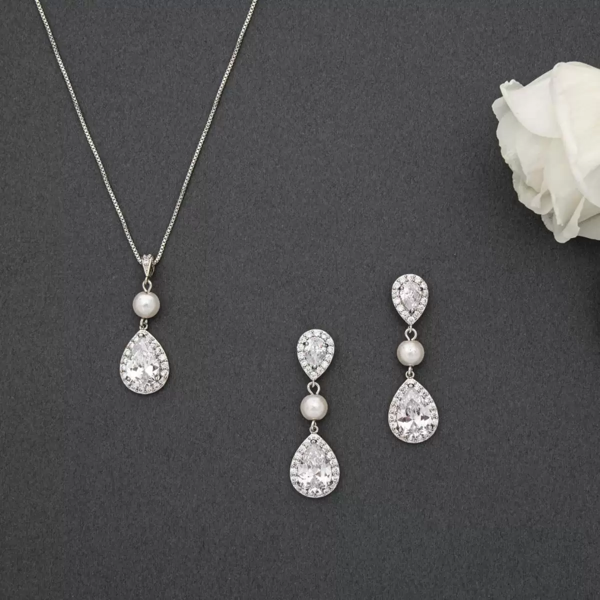 - Besteht aus Halskette mit Ohrringen