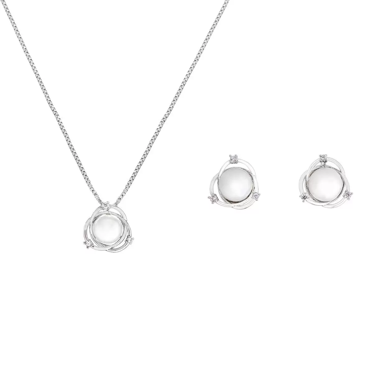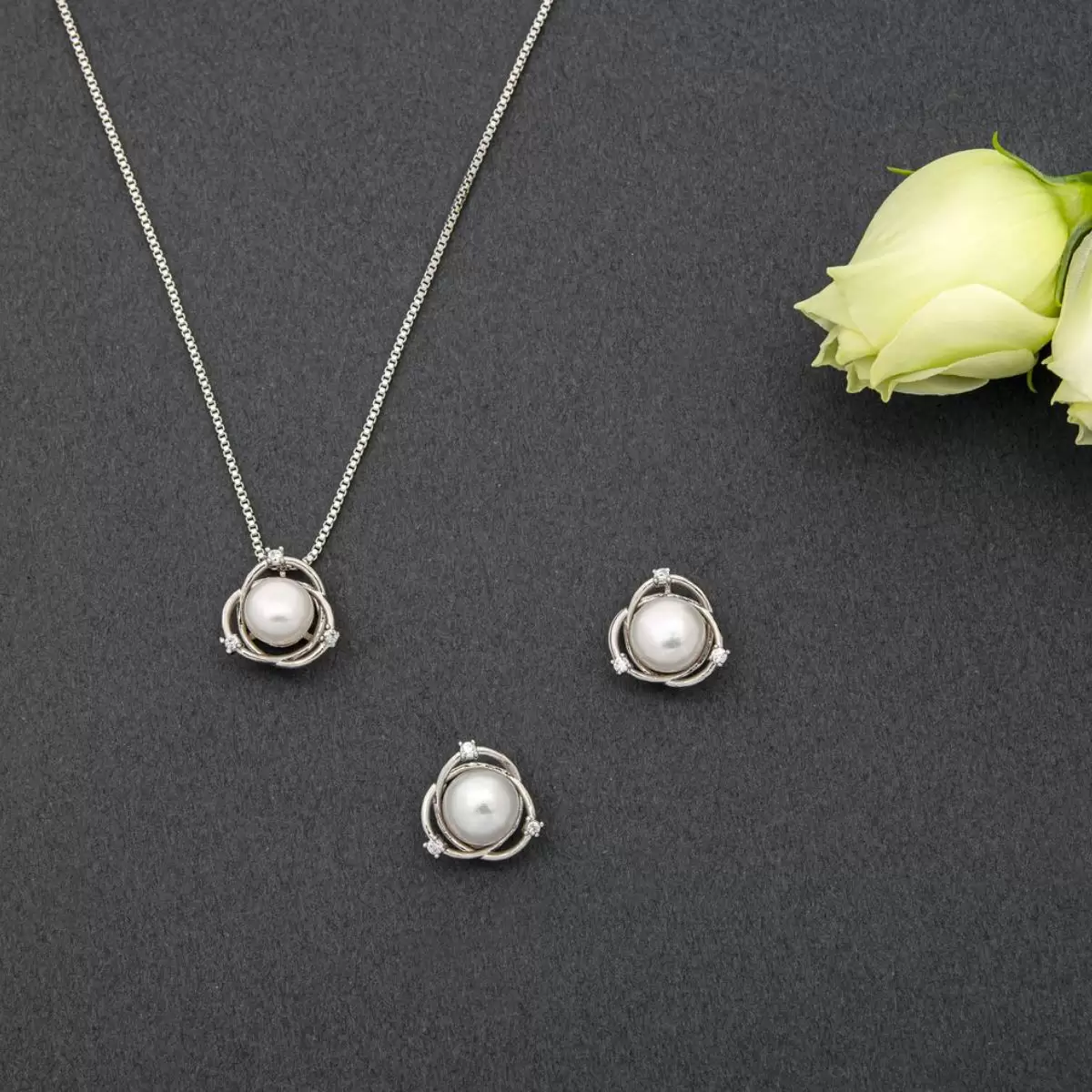 Klassisches Schmuckset JS220601 von G. Westerleigh. Verziert mit hochwertigen Zirkonia-Kristallen und cremefarbenen Perlen. Das Schmuckset besteht aus nicht allergischen Materialien (nickel- und bleifrei) und ist rhodiniert. Die Länge der Kette ist verstellbar. Das Set JS220601 besteht aus Ohrringen und Halskette und wird im eleganten Schmucketui geliefert. Wunderschönes Brautschmuck-Set, das bei Hochzeiten und zu wichtigen Anlässen besonders zur Geltung kommt.