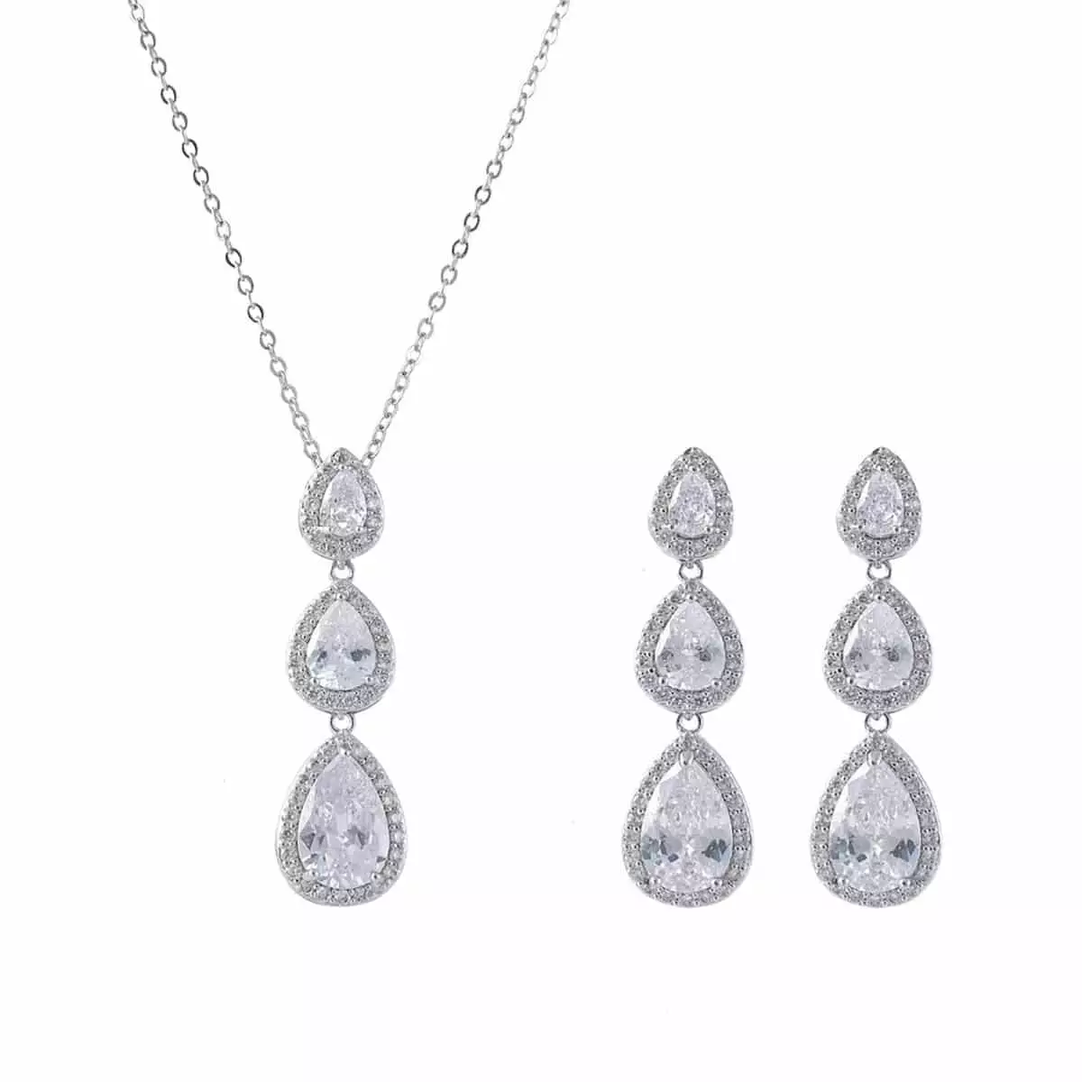 Wunderschönes Schmuckset JS6448 von G. Westerleigh mit einem exklusiven Design im klassischen Look. Verziert mit hochwertigen Zirkonia-Kristallen, die in aufwändiger Handarbeit eingearbeitet wurden. Dieses Schmuckset ist mit Rhodium bedeckt und besteht aus nicht allergischen Materialien (nickel- und bleifrei). Daher ist es auch für empfindliche Haut geeignet. Das Set JS6448 besteht aus Ohrringen und Halskette und wird im eleganten Schmucketui geliefert. Zudem lässt sich die Länge der Halskette individuell verändern. Perfekt geeignet als Hochzeitsschmuck für die Braut oder als Schmuck für besondere Anlässe.