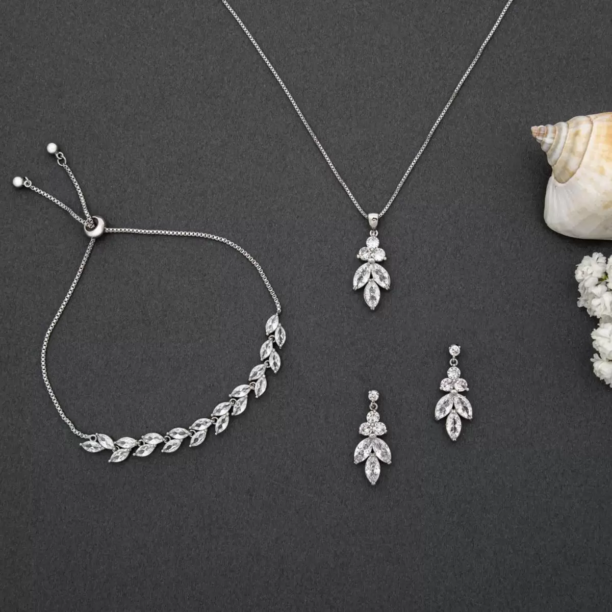 Das Brautschmuck-Set JSB210102 von G. Westerleigh besteht aus Halskette, Brautohrringen und passendem Armband. Wird in einem eleganten Schmucketui geliefert. Das Schmuckset ist rhodiniert (allergiefrei) und mit hochwertigen Zirkonia-Kristallen verziert. Die Länge des Armbands und der Halskette ist frei anpassbar. Ein wunderschönes Schmuckset JSB210102 für die Braut, für Hochzeitsgäste oder einfach als Schmuck für besondere Anlässe.