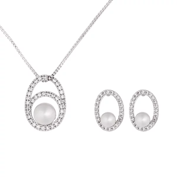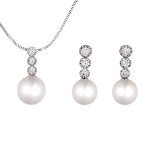 Das wunderschöne Schmuckset K-05362 von G. Westerleigh ist mit Cubic Zirconia Kristallen und cremefarbenen Perlen verziert, welche in aufwändiger Handarbeit eingearbeitet wurden. Außerdem ist das Brautschmuck-Set mit Platinum bedeckt und antiallergen (nickel- und bleifrei). Es passt daher auch zur empfindlichen Haut. Das Brautschmuck-Set K-05362 besteht aus Ohrringen und Halskette und wird im eleganten Schmucketui geliefert. Die Länge der Halskette kann individuell verändert werden. Eine ideale Wahl für Hochzeiten und besondere Anlässe.
