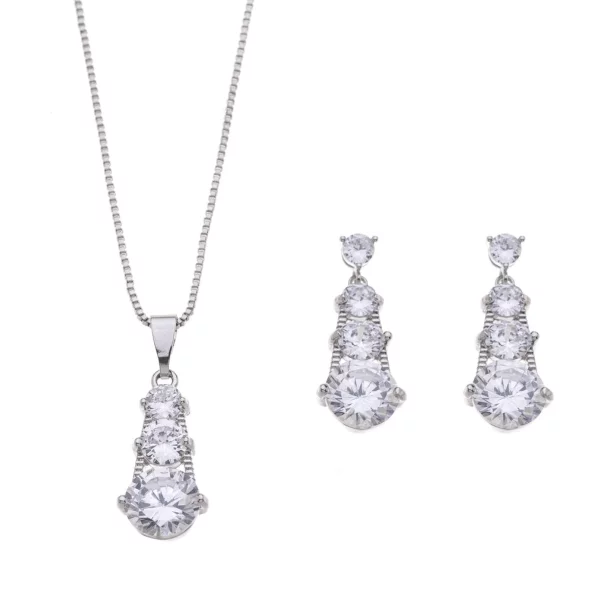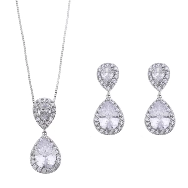Das wunderschöne Schmuckset N-A2014 von G. Westerleigh ist mit Zirconia Kristallen verziert, welche in aufwändiger Handarbeit eingearbeitet wurden. Außerdem ist das Brautschmuck-Set mit Rhodium bedeckt und antiallergen (nickel- und bleifrei). Es passt daher auch zur empfindlichen Haut. Das Brautschmuck-Set N-A2014 besteht aus Ohrringen und Halskette und wird im eleganten Schmucketui geliefert. Die Länge der Halskette kann individuell verändert werden. Eine ideale Wahl für Hochzeiten und besondere Anlässe.