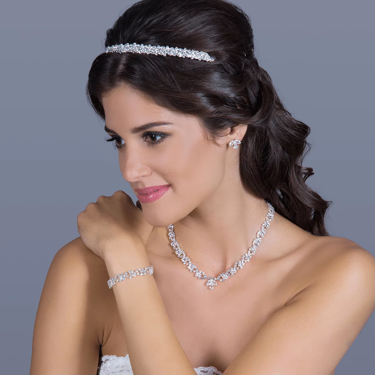 - Besteht aus Halskette mit Ohrringen