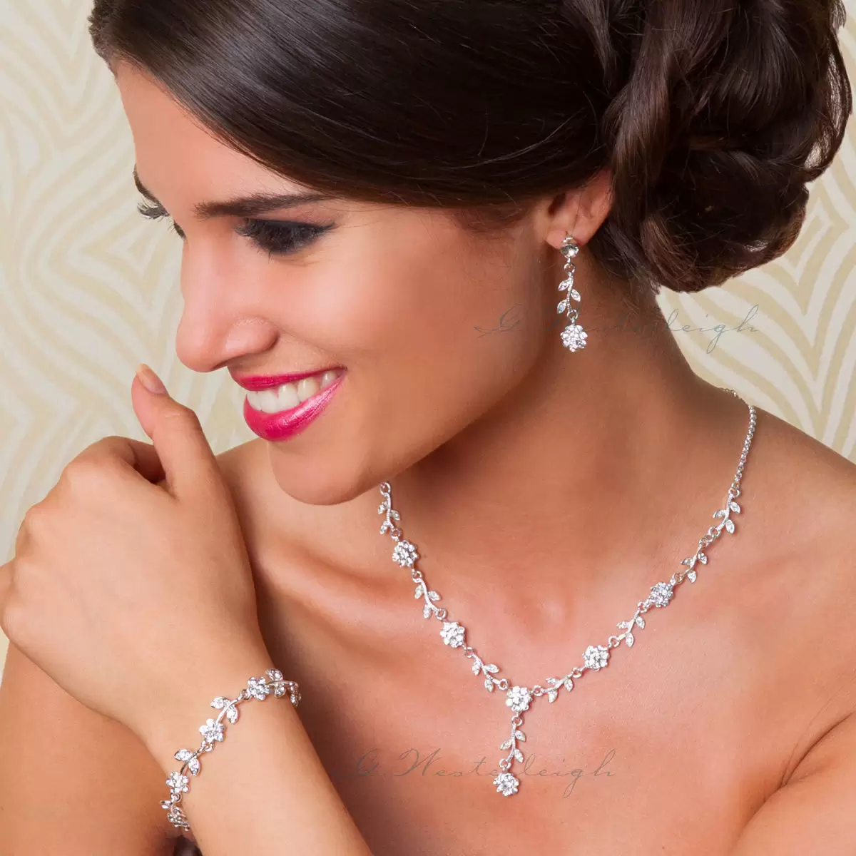 Klassisches Schmuckset NS-J207 von G. Westerleigh besteht aus hochwertigen Zirkonia-Kristallen. Das Brautschmuck ist versilbert und antiallergen, d.h. nickel- und bleifrei. Das Set NS-J207 besteht aus Ohrringen und Halskette und wird im eleganten Schmucketui geliefert. Bestens geeignet als Hochzeitsschmuck für die Braut oder als Schmuck für besondere Anlässe. Ein echter Hingucker! Zu diesem Schmuckset empfehlen wir unser Armband BL6029.