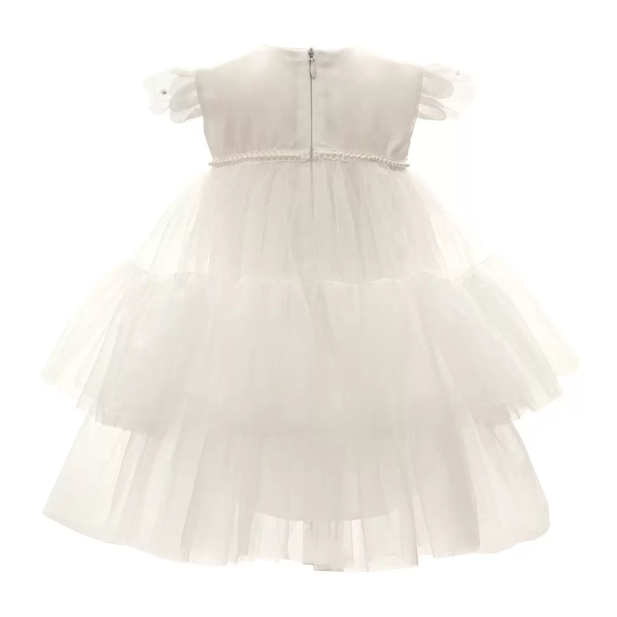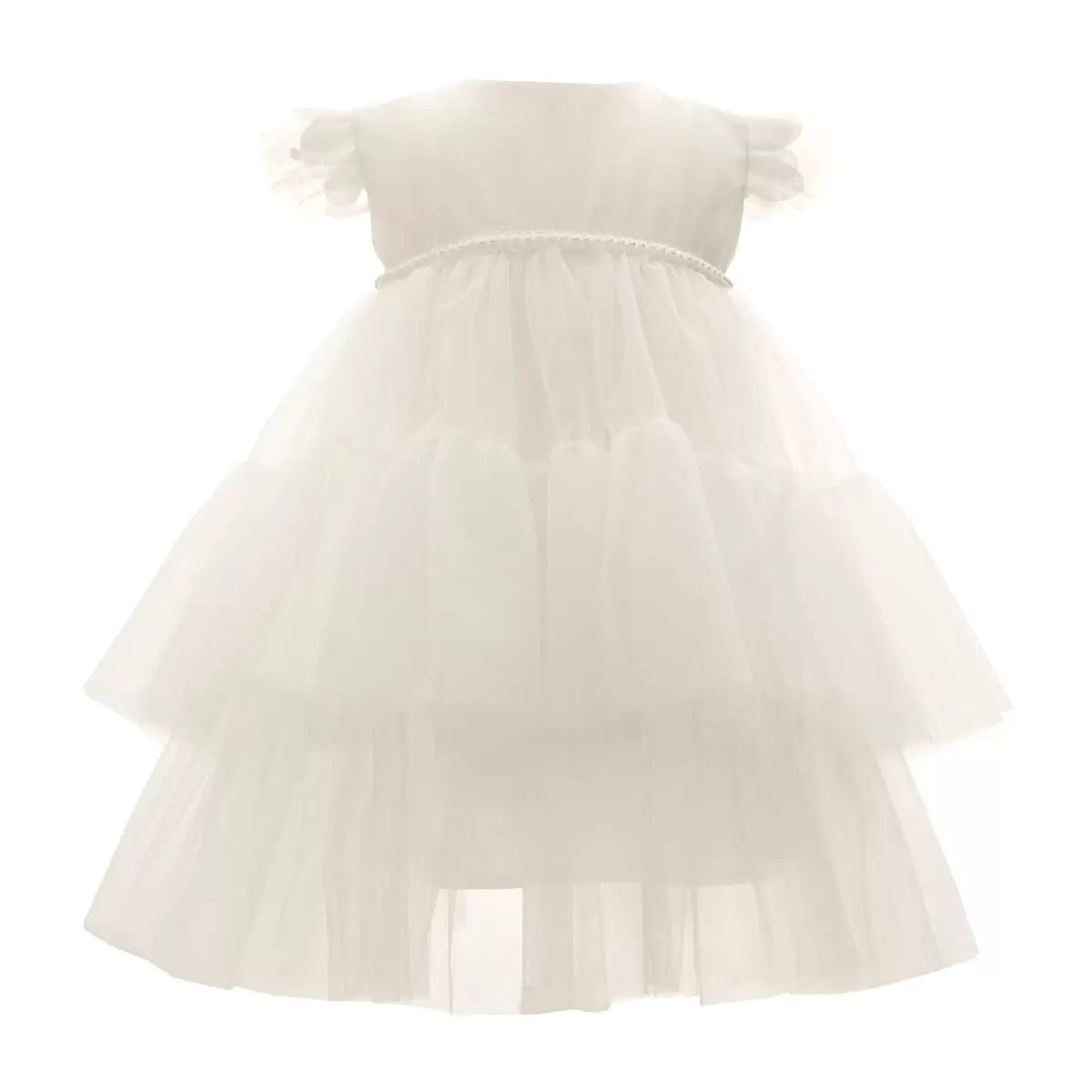 Ein wunderschönes Kleid für die Taufzeremonie aus der Premium-Kollektion. Taufkleid Dalary DK-S1500 aus zartem Tüll mit Rüschenbesatz. Verziert mit einem Zierband mit Perlen. Kurze ausgefallene Ärmel aus Tüll mit kleinen Kristallsteinen. Die Länge des Kleids reicht bis über das Knie.