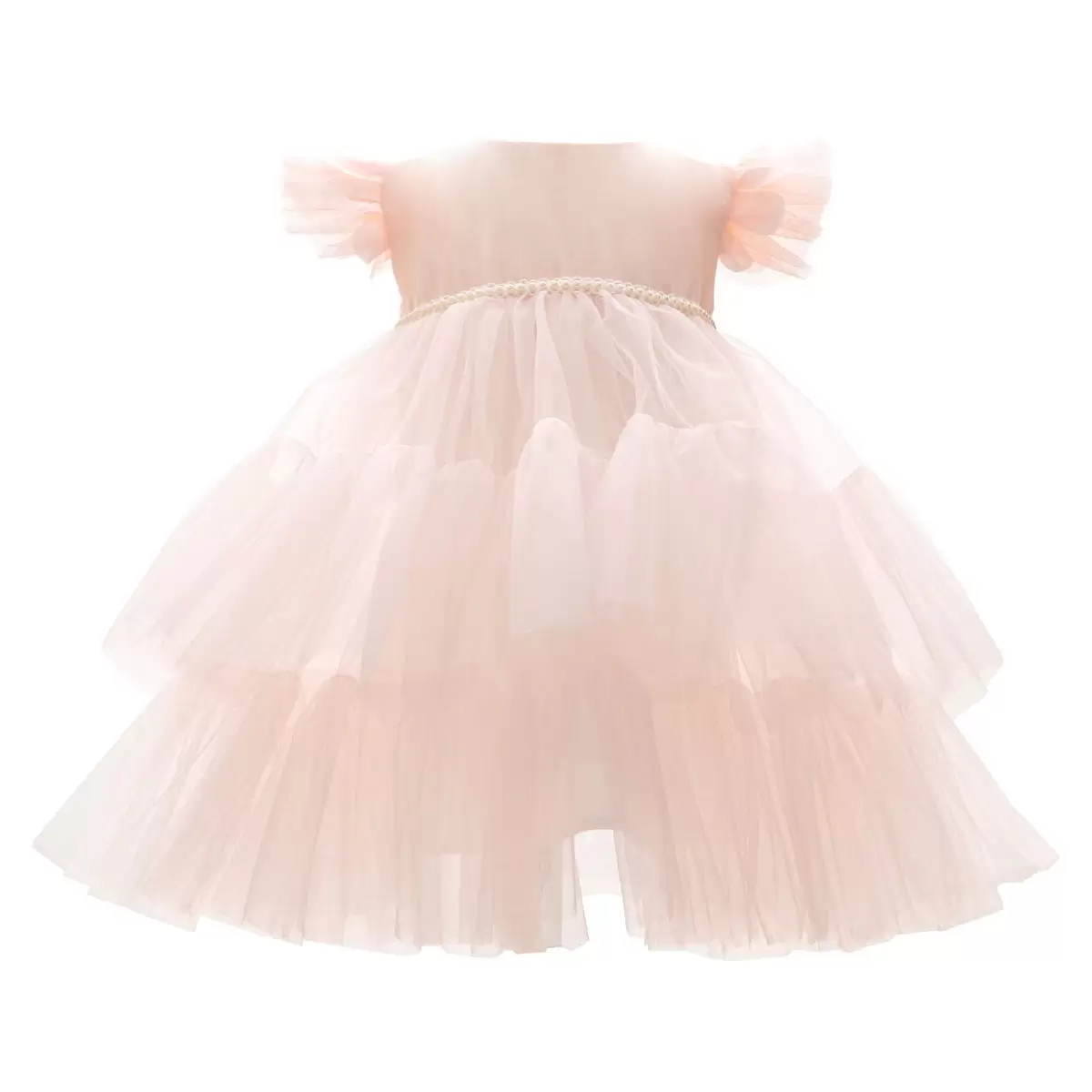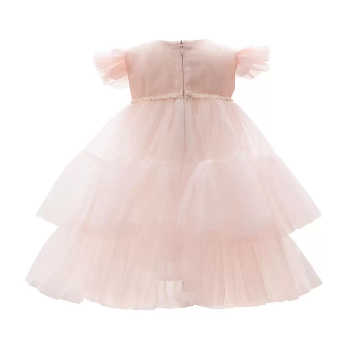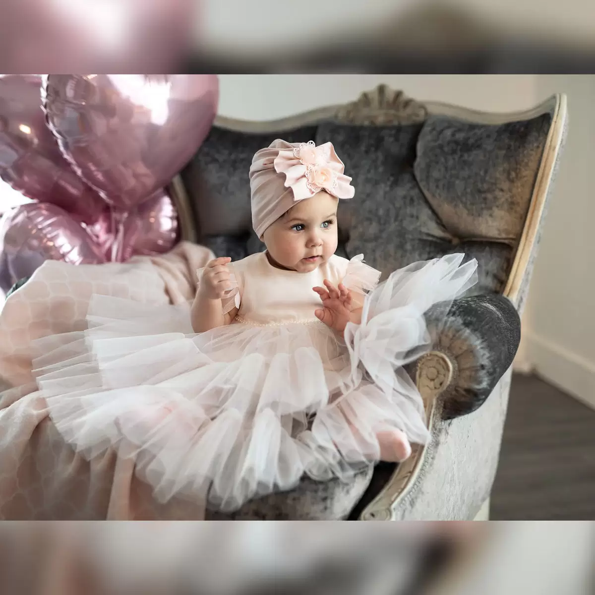 Ein wunderschönes Kleid für die Taufzeremonie aus der Premium-Kollektion von Dalary. Das Taufkleid Dalary DK-S1501 besteht aus zartem Tüll mit Rüschenbesatz in Farbe Rosa. Mit einem Zierband verziert, das mit Perlen bestückt ist. Kurze ausgefallene Ärmel aus Tüll mit kleinen Kristallsteinen. Die Länge des Kleids reicht bis über das Knie.