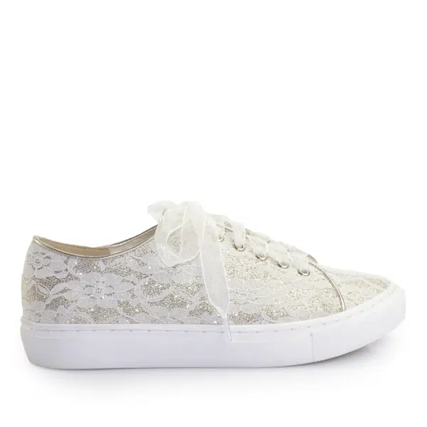 Wer auf einen hohen Absatz verzichten möchte greift zu bequemen Brautschuhen mit einem flachen oder niedrigen Absatz. Schließlich ist das Laufen mit High-Heels auf Dauer sehr anstrengend. Solche Brautschuhe gelten als besonders komfortabel und werden gerne auch als zweites Paar gekauft. So hat man für den Hochzeitstanz und andere Aktivitäten ein zweites Paar bequemer Brautschuhe Gold. Dabei müssen die Brautschuhe nicht vollständig aus einem goldfarbenen Material bestehen. Bequeme Brautschuhe aus Satin gibt es in Ausführungen mit stylischen goldfarbenen Elementen, die oft mit schönen Glitzern, Kristallen, Perlen und Steinen bestückt sind. Das sieht sehr elegant aus und macht die Brautschuhe zum Highlight des Brautoutfits – trotz dem niedrigen Absatz. Als besonders bequem gelten die Braut-Sneaker. Diese „etwas anderen“ Brautschuhe werden dank dem erhöhten Komfort und extravaganten Aussehen immer öfter von Bräuten bevorzugt.