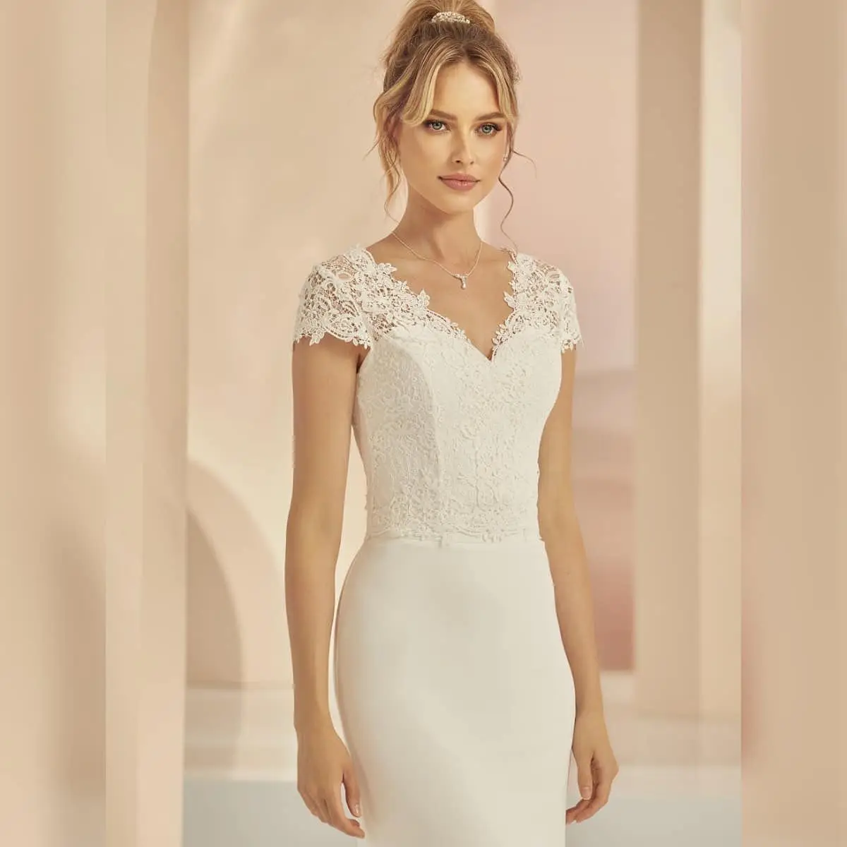 ByStep macht es möglich, Deinen Hochzeits- oder Festtags-Outfit bequem online zusammenzustellen. Vom Kleid, Schuhen, einer schicken Tasche bis hin zum Schmuck und einer Schleppennadel. Wir helfen Dir gerne dabei, Dein Lieblingsstück zu finden! Unser virtuelles Brautmodengeschäft macht es möglich: Ganz ohne Termin und feste Öffnungszeiten. Mit Anprobe in Deinem Wohnzimmer oder Büro.